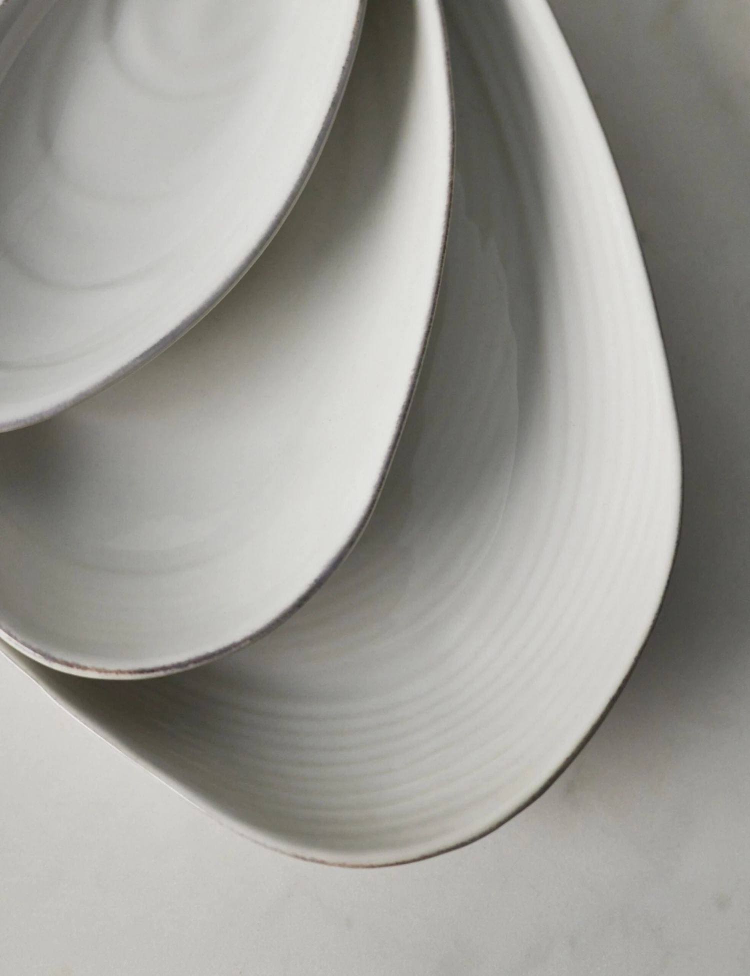 In the Aparte collection, organic lines pair with a pearly gloss finish and subtly contrasted rim to offer a versatile appeal that will blend seamlessly into any dinnerware set. Whether building a bespoke dinnerware collection or filling out an existing one with essential accents, these nesting trays are the perfect accent for entertaining or everyday kitchen decor.