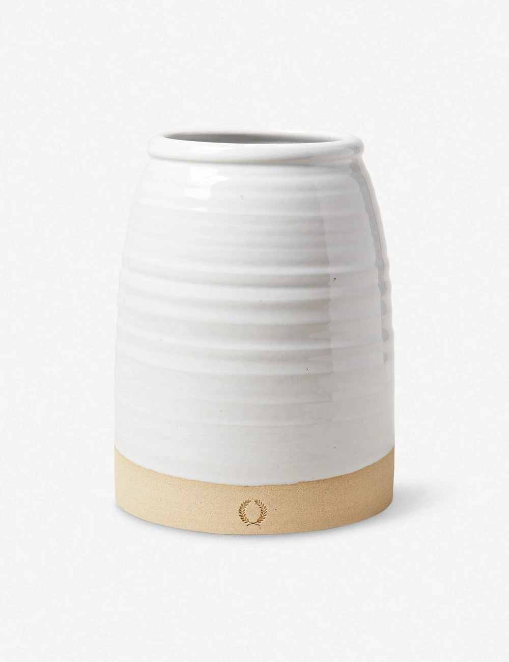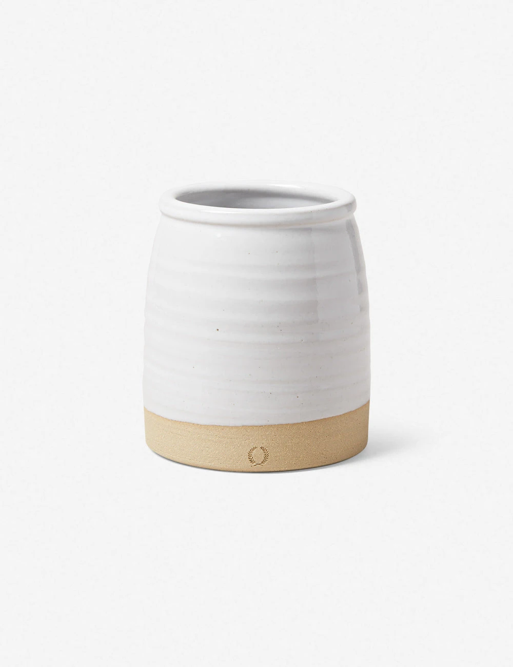 Vermont-based studio Farmhouse Pottery creates handcrafted accents and table essentials with rustic charm. A classic silhouette showcases artisanal appeal of this stoneware crock. From corralling essential utensils to offering a fresh floral display on your counter or table, this container brings a practical, timeless touch to a kitchen.