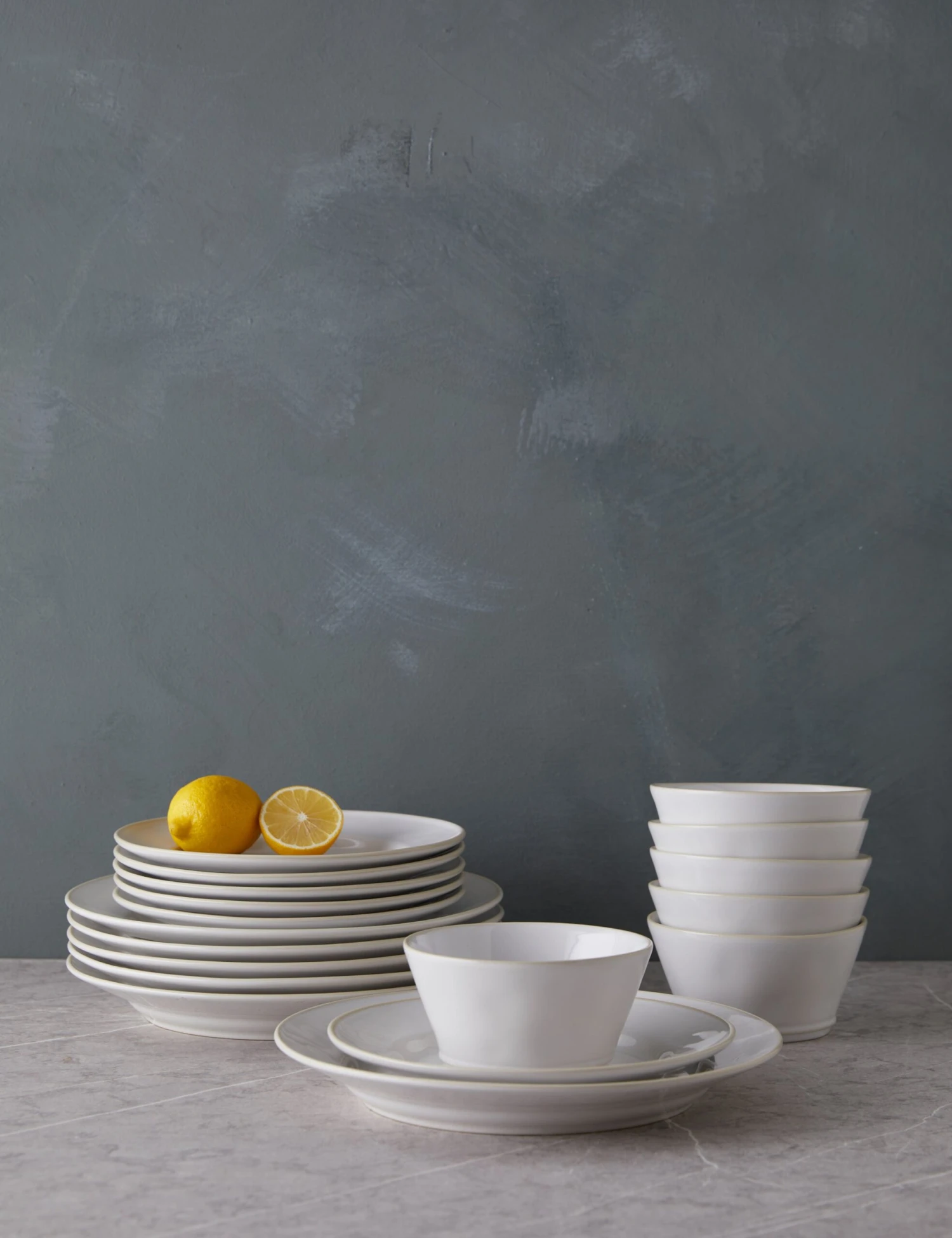 The Beja dinnerware set offers sophistication with a rustic tone that features stoneware construction finished with a colored rim. Each piece is dishwasher, oven, and microwave safe, offering a dish set that’s stylish enough for dinner parties yet durable and easy for everyday bites.