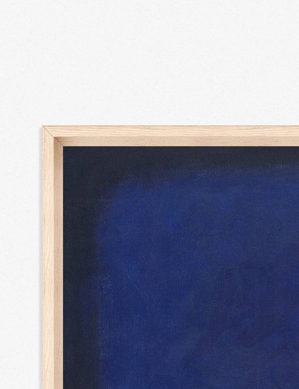 Blue squares in soft focus sit on a dark field, bringing a modern tone to this abstract wall art by Thomas Black. We love this original wall art painting as an elevating addition to a space that blends mid-century undertones with a signature edge.