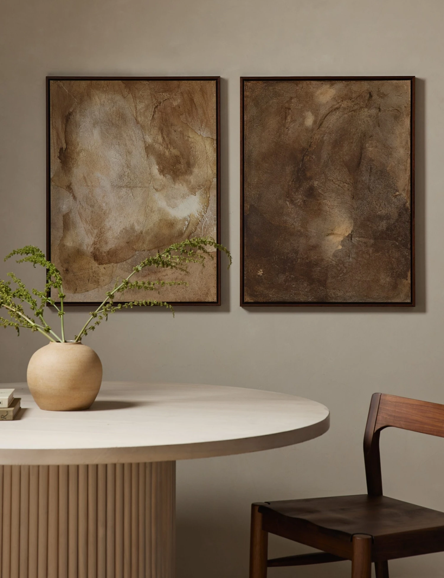 This abstract wall art by Molly Supplee offers a quiet impact with its rich, textural composition. The canvas exudes a timeless warmth, layered in deep earthy tones that ground your wall decor. We love this piece for a space that blends traditional elements with a modern edge.