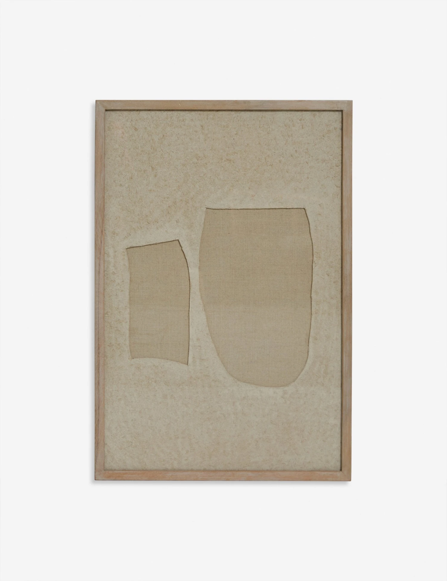 Add dimension to your wall decor with this mixed-media piece. The pulp overlay reveals a smooth jute surface below, fashioning this unique wall artwork with endless textural intrigue. Drey features an organic arrangement of shapes in an earthy neutral tone.