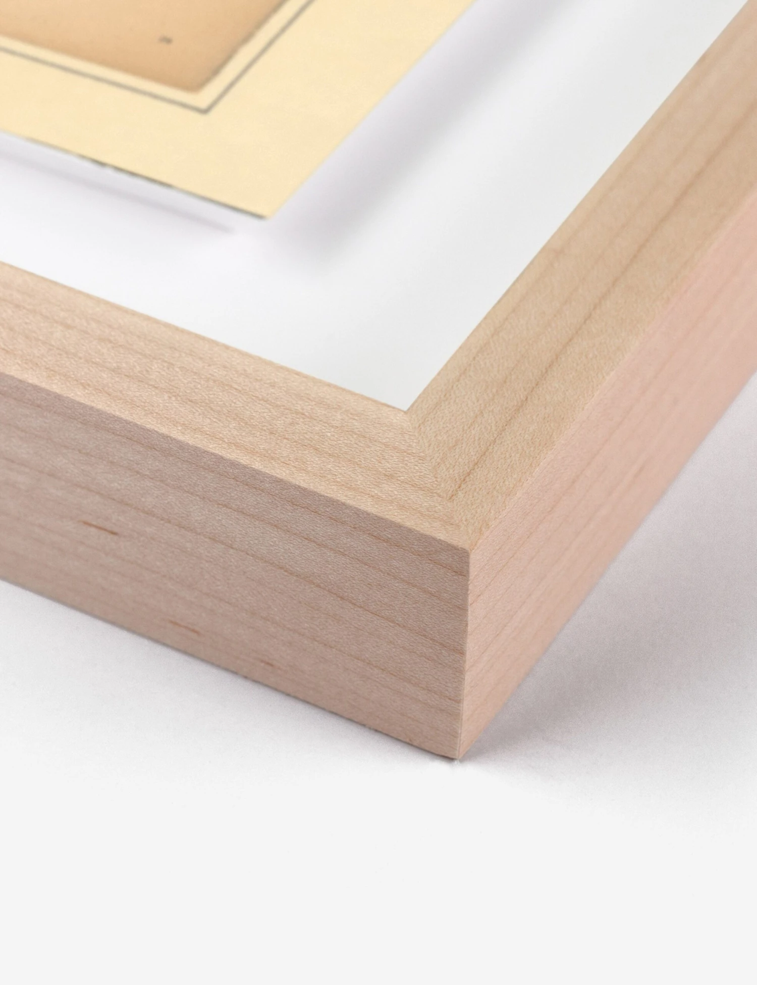 Amy Berlin transforms aged book pages and other found materials into unique wall art collages, balancing precise lines with marks of the mixed media process. Blushing tones sit nested in a crisp composition in this abstract piece. We love the warm palette for a soft, uplifting addition to modern wall decor.