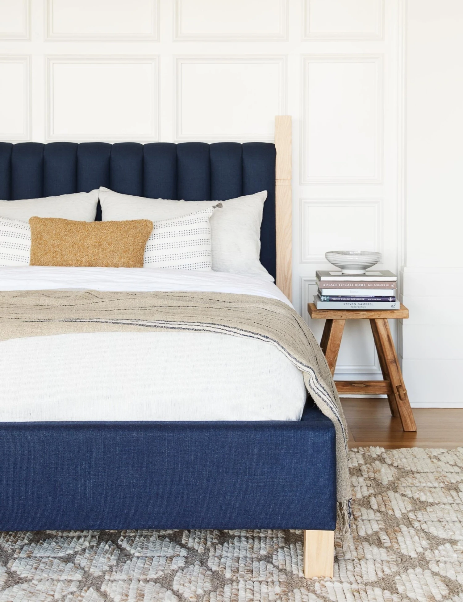A square-dot stripe pattern with tassel corners combines modern geometric designs with bohemian aesthetics in this long lumbar pillow. This throw pillow is the perfect easy update for a bed or sofa.