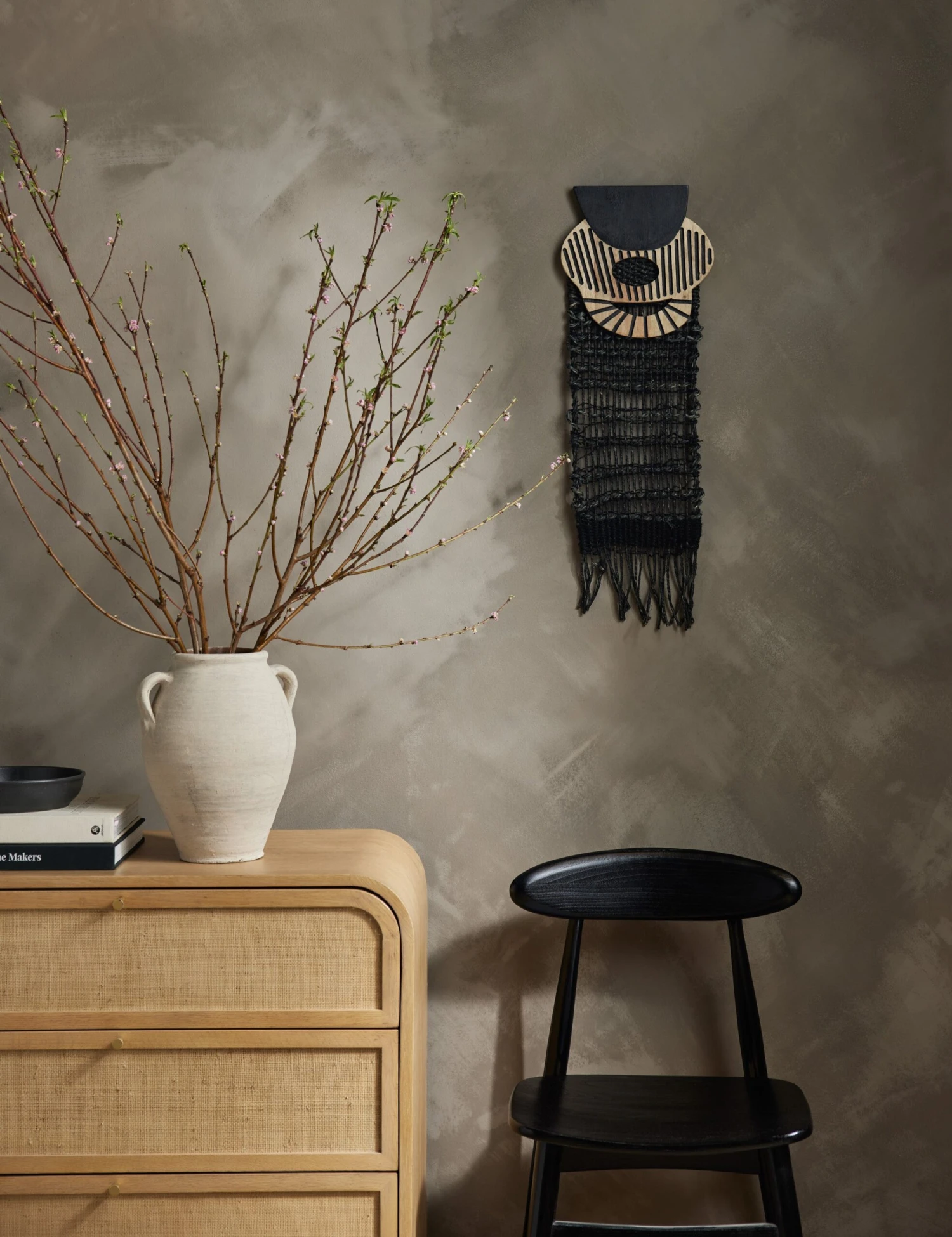 In her exclusive collection for Lulu and Georgia, Hadiya Williams uses clay, textiles, and other natural materials to tell visual stories inspired by the culture of the African diaspora. This handcrafted wall hanging features bold shapes fashioned from mango wood. This signature piece will bring warmth and texture to your wall decor.