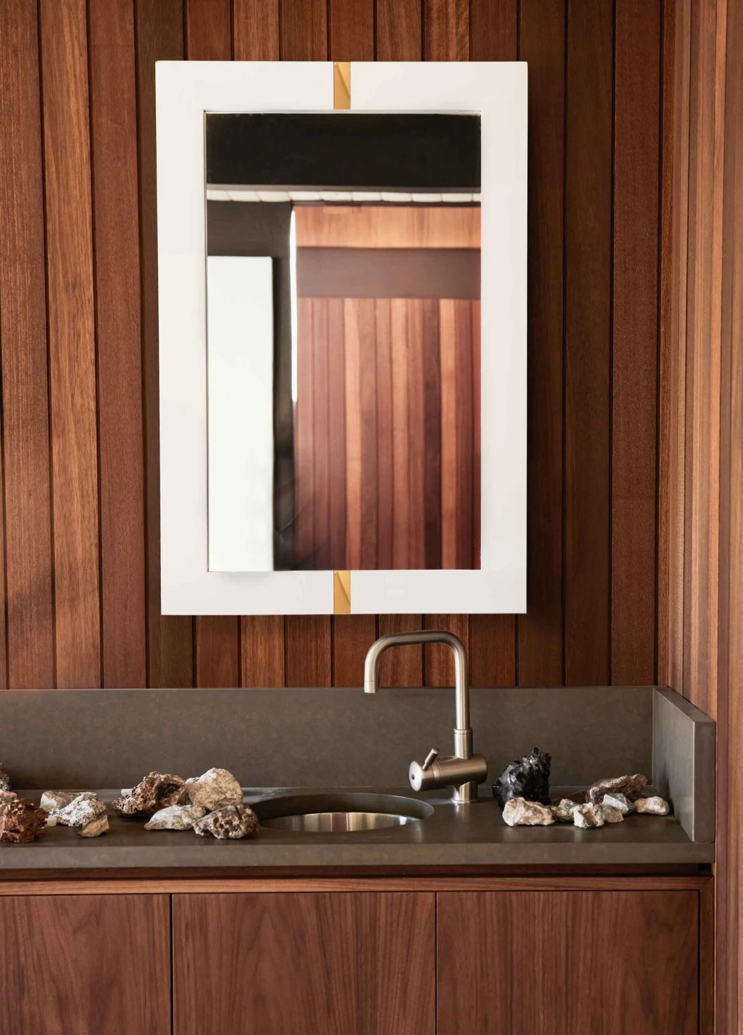 A glossy white frame and gold detailing seamlessly blend modern and art deco styles to create this mirror for your wall. This decorative mirror’s understated style looks great in your bedroom set above your bed or dresser, or place it in your hallway or entry for an easy, stylish accent.
