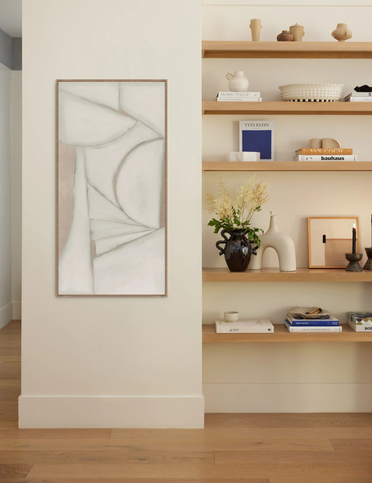 A neutral palette brings a soothing balance to this geometric composition by Bella Lane. A high-quality giclee print on fiber canvas—this piece offers stunning quality full of depth and texture for your wall decor. We love this abstract wall art as a standalone feature for small-space impact or styled as a triptych set for statement appeal.