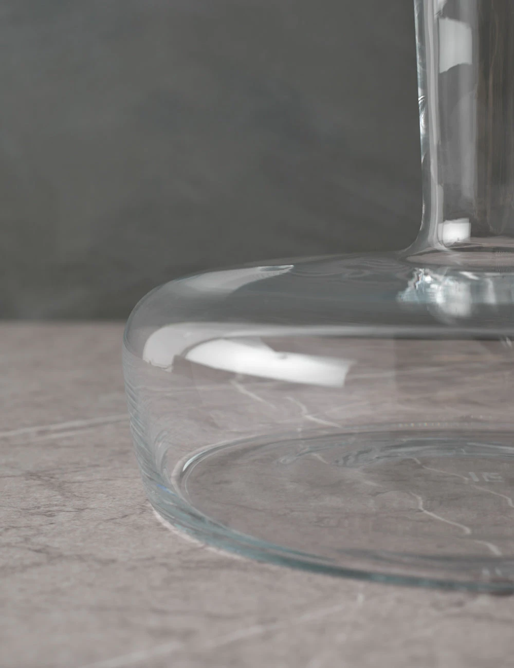 Angular silhouettes and rounded details add sophistication with a modern edge to this versatile glassware collection. This carafe offers standout appeal to suit your drinkware with its stunning mouth-blown design. The dramatic lines make this glass pitcher an eye-catching addition to the table, whether serving water or wine.