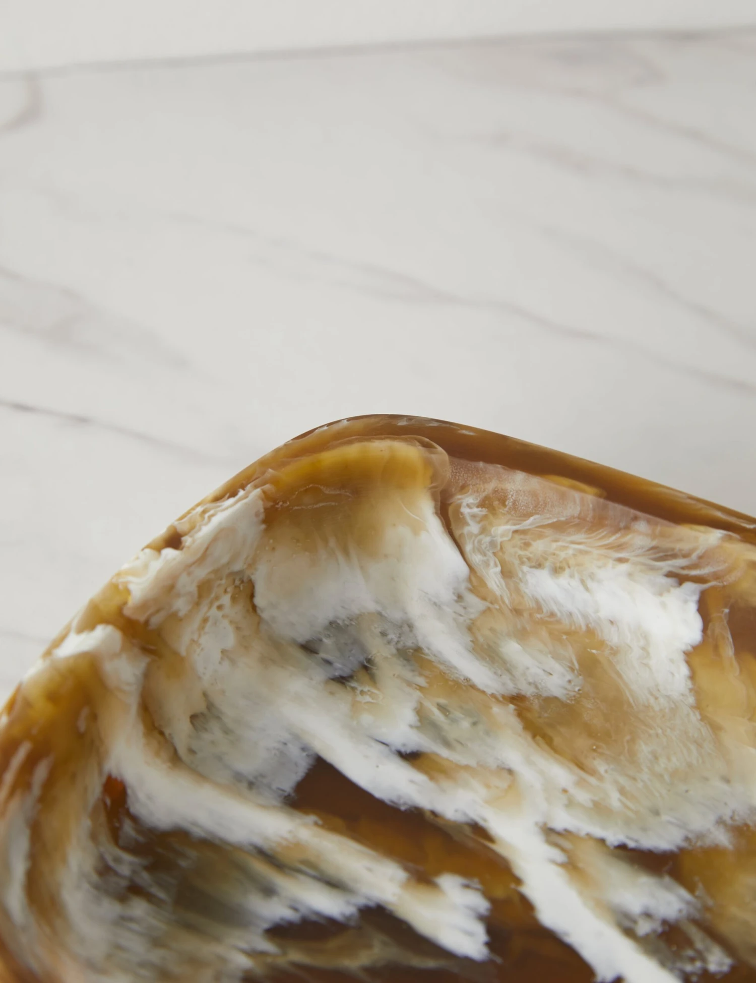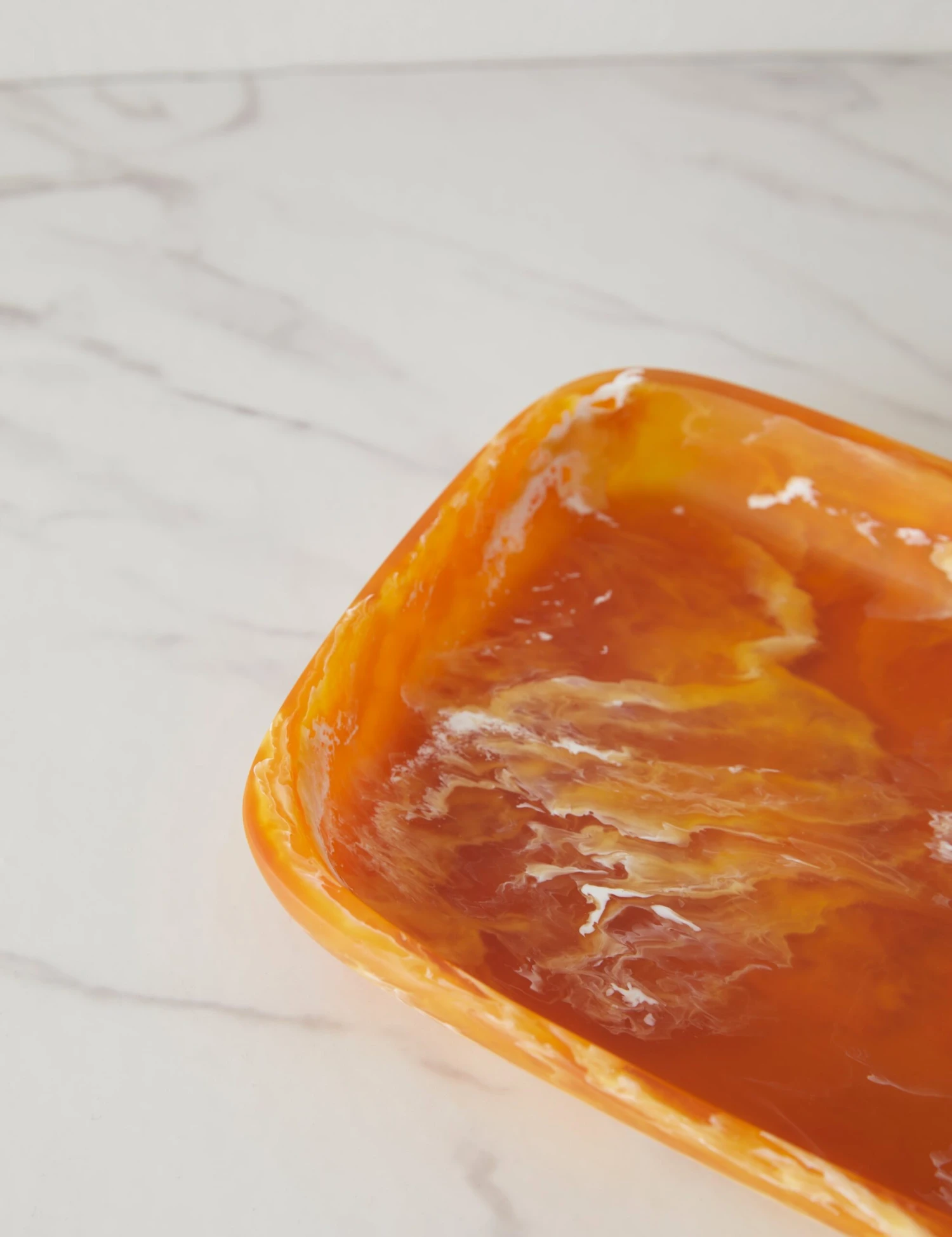 Atlawa makes beautifully formed resin creations in Mexico. This kitchen collection features naturally inspired colors that blend and swirl in a marbleized pattern. Showcase your culinary prowess on a platter that celebrates style and elevates the everyday into a unique design moment.