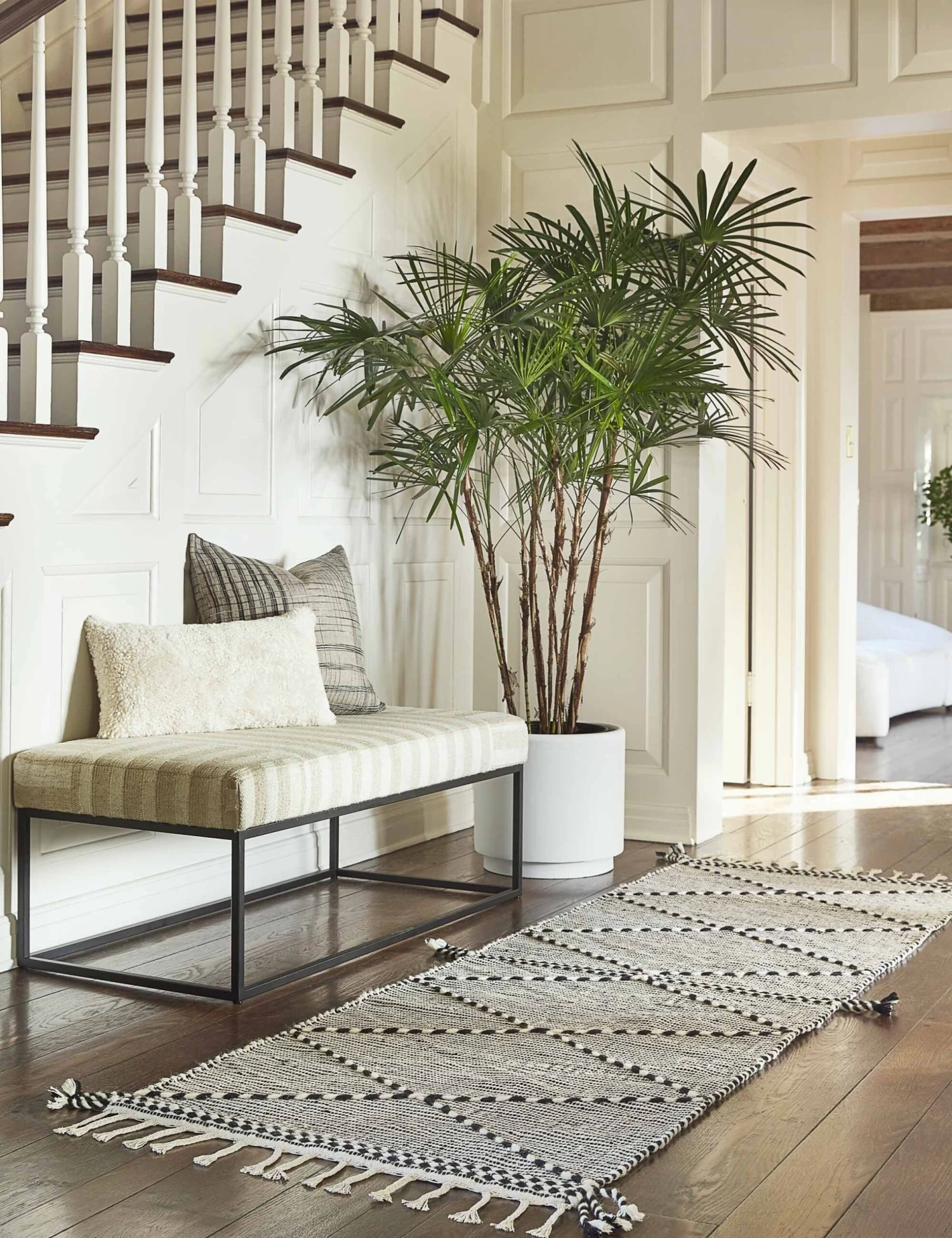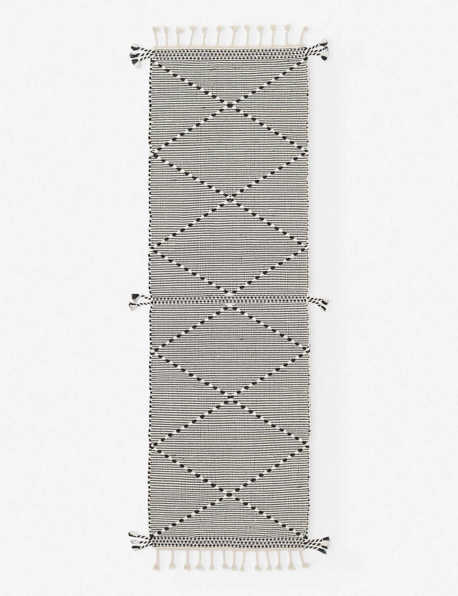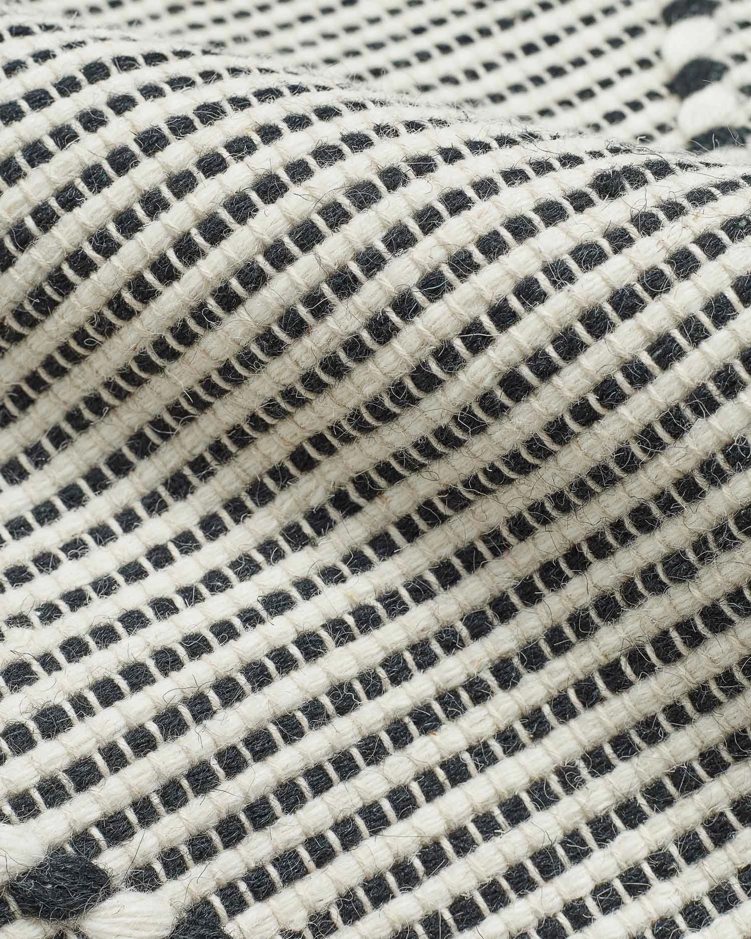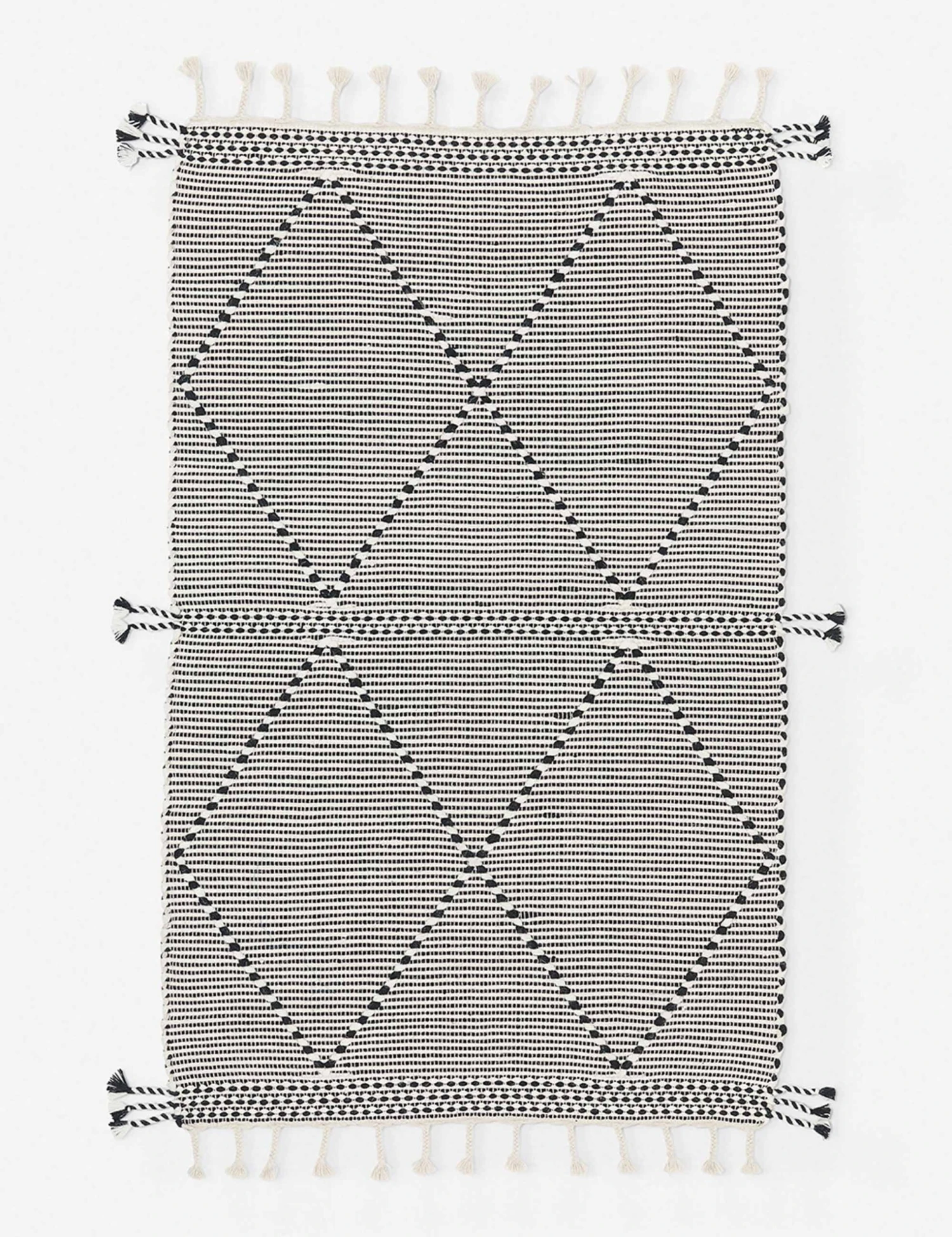Inspired by traditional Moroccan flatweaves, our durable Taza Rug is constructed from high quality materials, and features a classic geometric design and subtle fringed details. This black and white rug pairs well with minimalist and bohemian decor in neutral tones.
